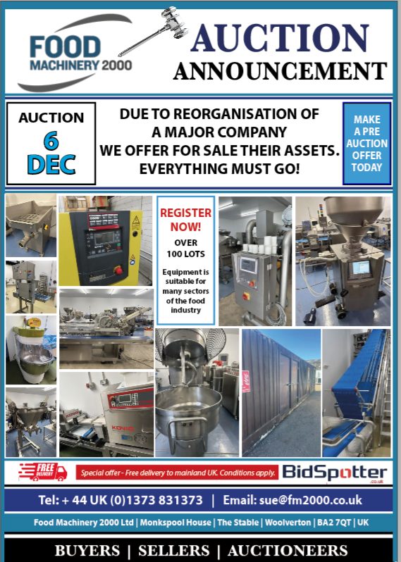AUCTION OF FOOD PROCESSING AND PACKAGING EQUIPMENT. SUITABLE FOR MANY SECTORS OF THE FOOD INDUSTRY.