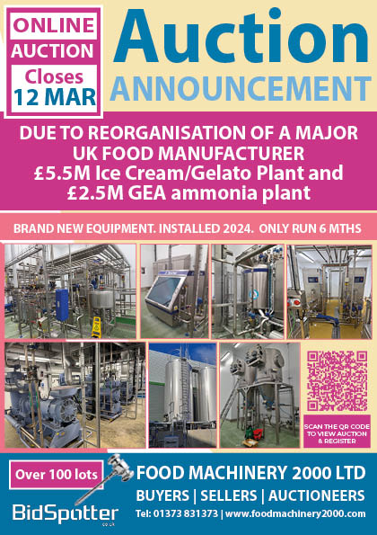 IMPORTANT AUCTION OF REFRIGERATION AND ICE CREAM / GELATO PLANT. INCLUDES BRAND NEW EQUIPMENT INSTALLED 2024. ONLY RUNNING FOR 6 MONTHS.