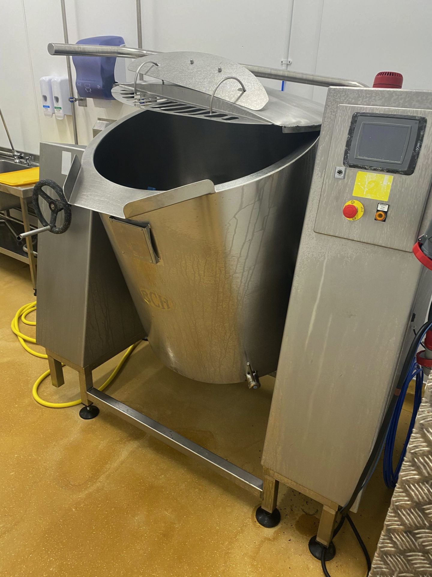 BCH 300 litre cooking kettle with side wall scrap mixing. All s/s vessel with tilting. Fully programmable.