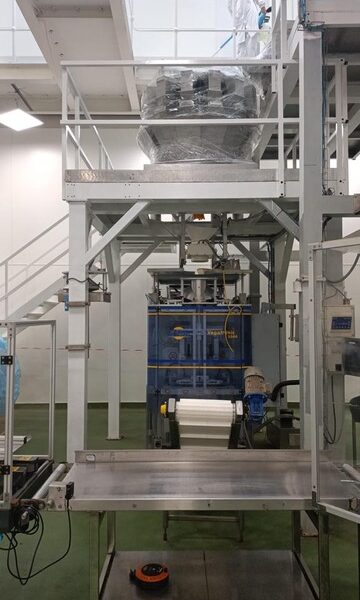 Complete Ilapak weighing and bagging line for bulk packing or quad seal packet. Line consisting of