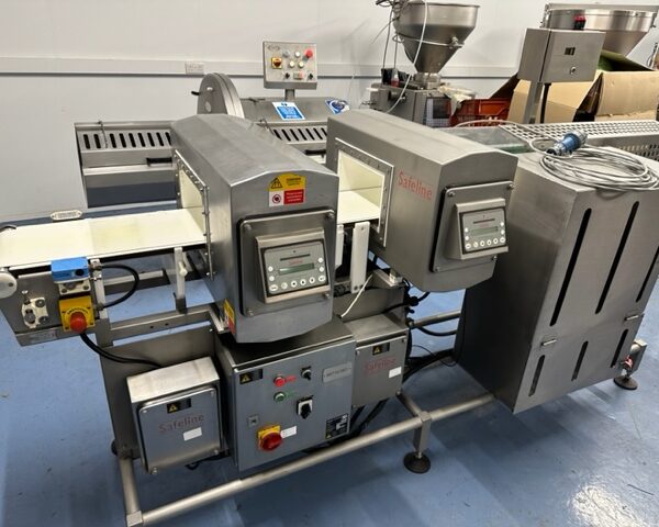 Safeline twin head metal detector aperture 350x 140. Push arm reject into lockable bin. Retail spec. Fully working